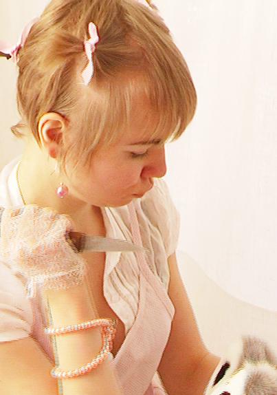 A rhythmically coordinated system of hooks and gibs, 12 speakers, an edited soundtrack on a looped DVD, a DVD player