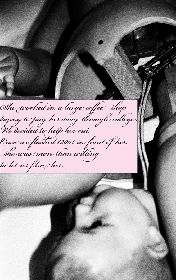 A rhythmically coordinated system of hooks and gibs, 12 speakers, an edited soundtrack on a looped DVD, a DVD player